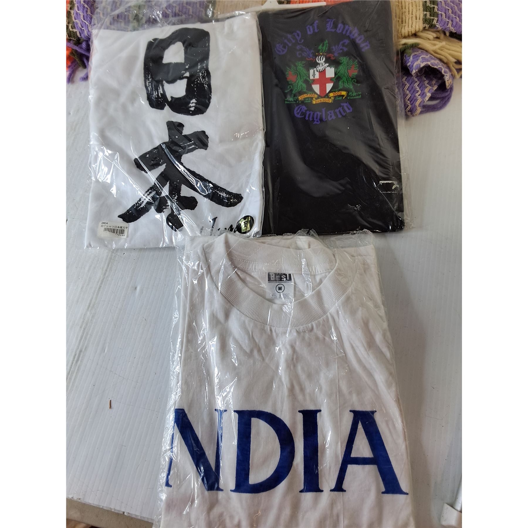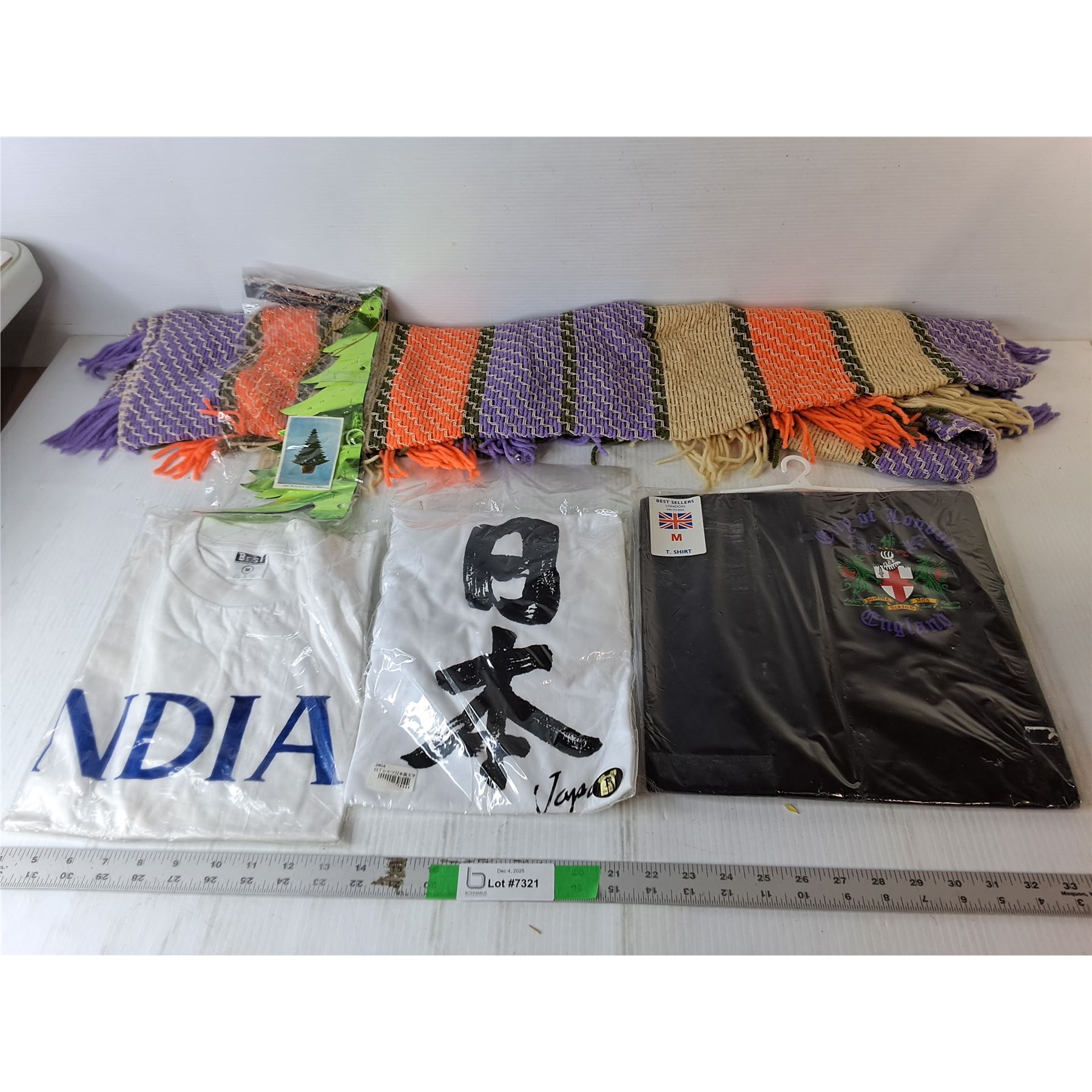Scarf, (3) Men's Tshirts; England, India, Japan-M, Tree Decoration