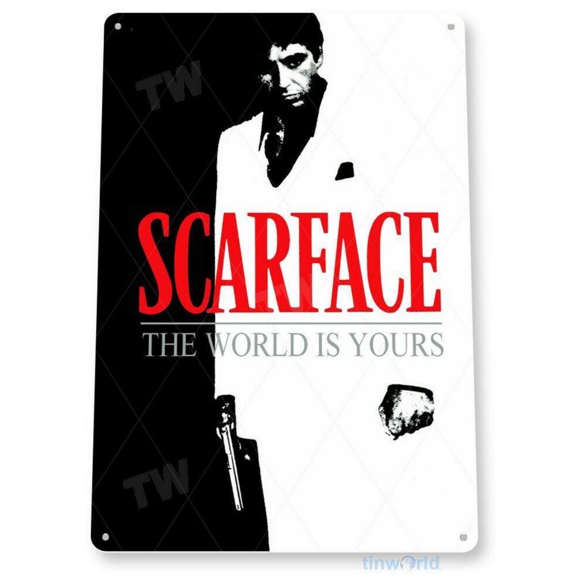 Scarface movie metal pub bar sign. 8" X 11" with pre-drilled holes for mounting.Â
