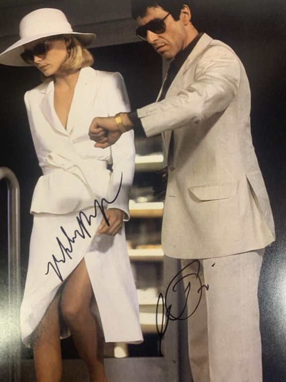 Scarface signed movie photo autographed by Michelle Pfeiffer and Al Pacino. 11x14 inches. HL15157