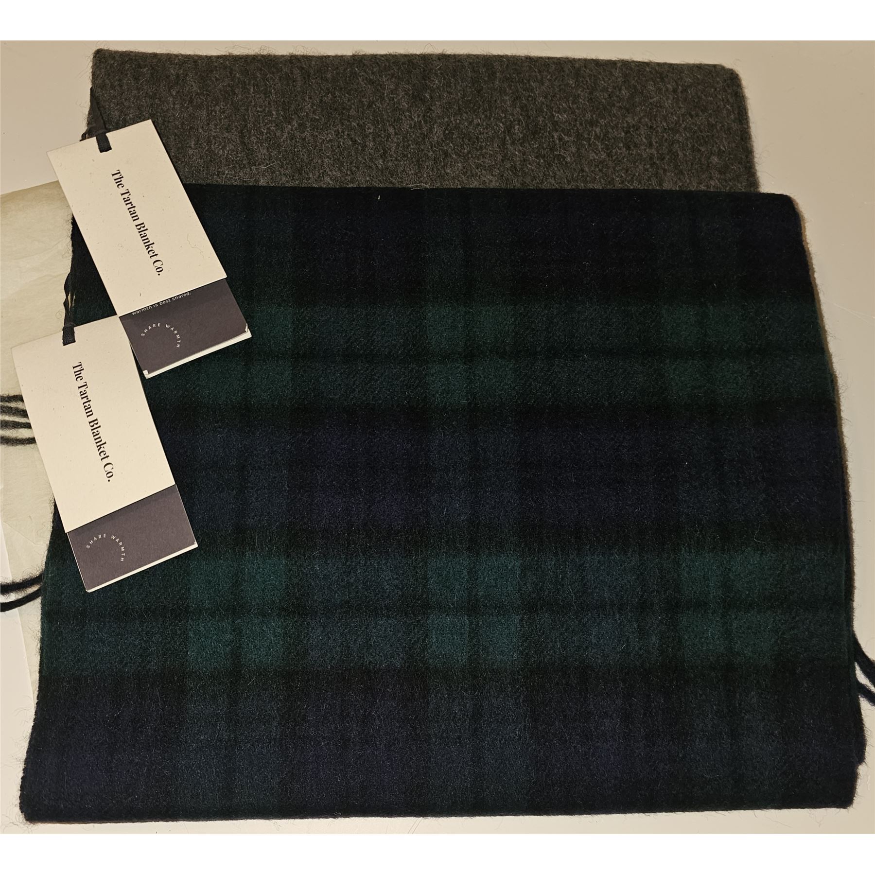 Set of 2 Luxurious dark plaid wool scarfs, soft and warm, new with tags, from the tartan blanket company