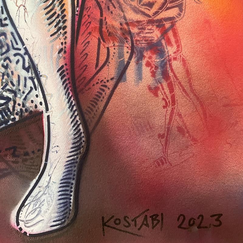 "Scarlet Introspection" is an original mixed media painting on paper by Mark Kostabi, hand signed by the artist. The piece comes framed. Includes Certificate of Authenticity. Measures approx. 35.5" x 48" (frame), 29.5" x 42" (image). This item requires special handling and may have a longer than usual turnaround.