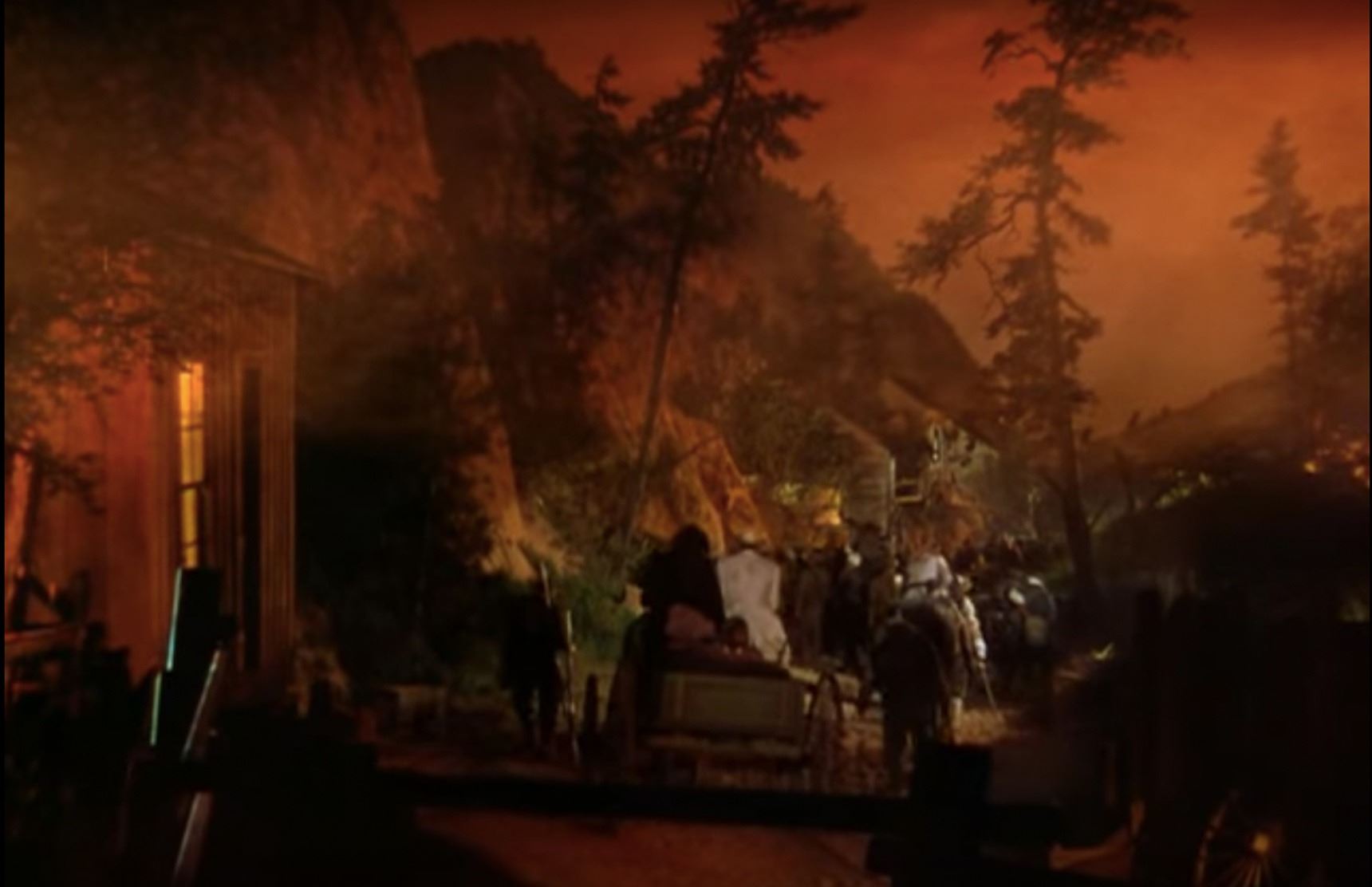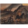 112. Scarlett and Rhett's flight from the Burning of Atlanta original concept artwork from Gone With the Wind. (MGM, 1939) Vintage original artwork accomplished in pencil and gouache on 19.65 x 15 in. artists leaf tipped to backing board with 3.75 x 1.45 in. production information sticker tipped to upper right corner typed, Set #24 Ext. McDonough Road. For filming the burning of Atlanta, new false facades were built in front of the Selznick backlot's many old abandoned sets, and Selznick himself operated the controls for the explosives that burned them down. Sources at the time put the estimated production costs at $3.85 million, making it the second most expensive film made up to that point, with only Ben-Hur (1925) having cost more. Exhibiting age and production wear, corner loss, edge chipping and loss. In vintage good condition. $6,000 - $8,000