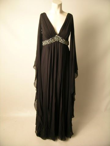 Barbara (Heather Locklear) black with shiny plastic under the bust, zipper in the back 'Teri Jon' long dress. (size 6)