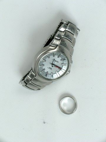 Decaprio's (Ben Cornish) silver costume ring and metal "Nixon" watch.