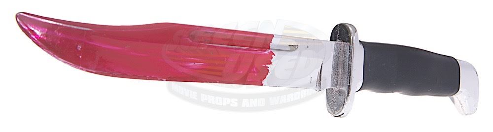 This very special prop knife was custom-made for use by various actors as "Ghostface". The knife is made of plastic and features a special chromed finish and red painted blade to simulate blood staining. Measures 11.75" in length.
