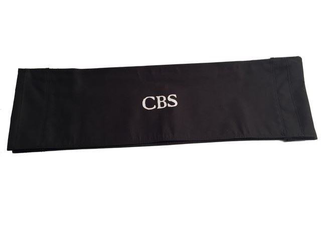 Black canvas chair back used on the set during production for CBS employees. (25x8)