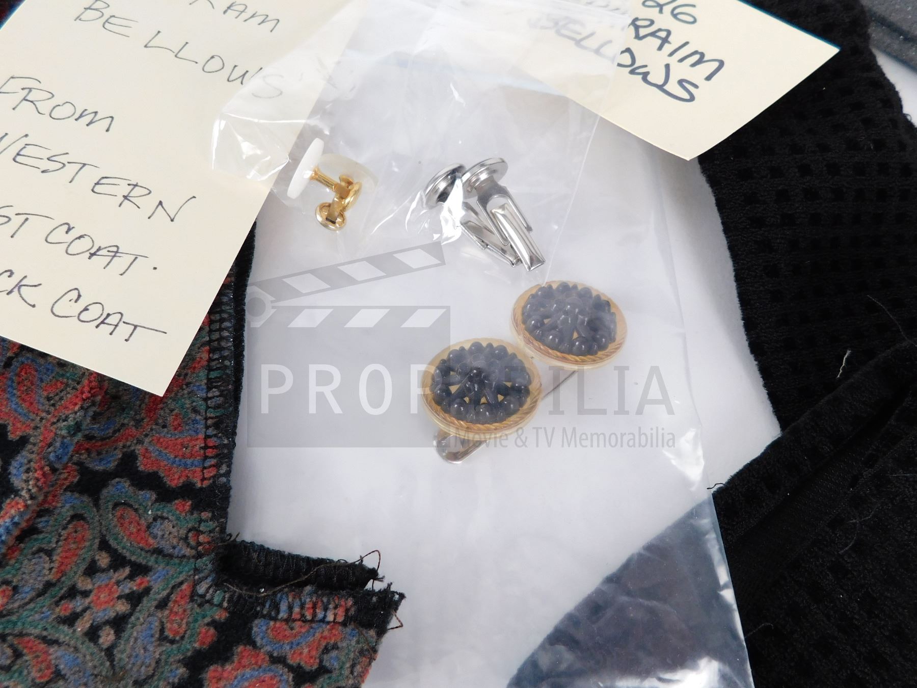 Waistcoat offcuts, cufflinks, buttons and collar studs. Also included is his costume change details sheet and continuity images.
