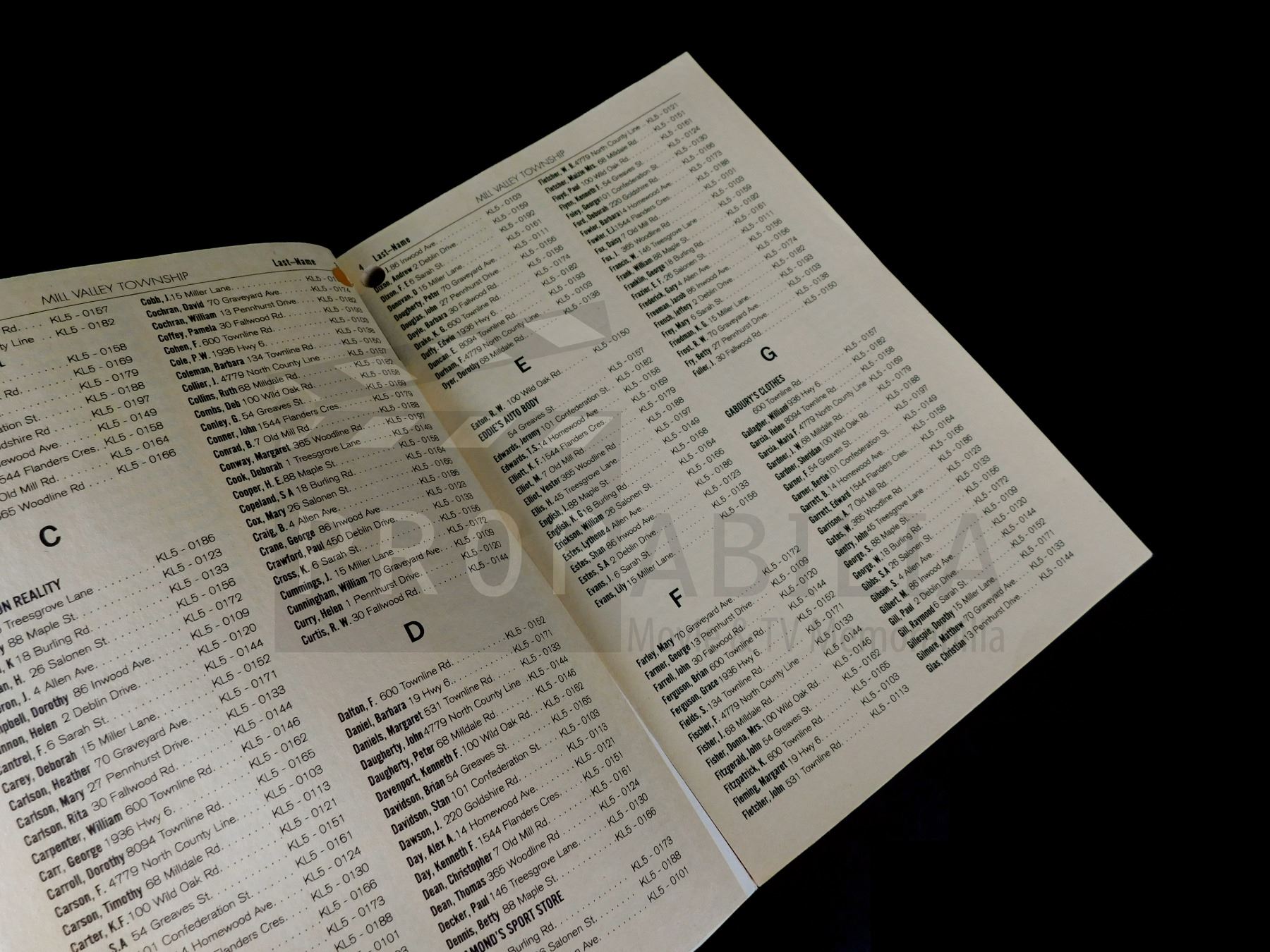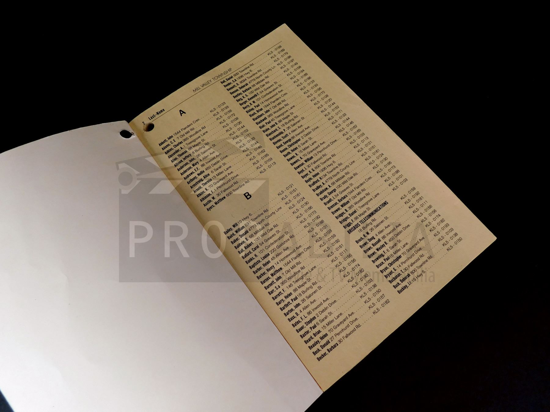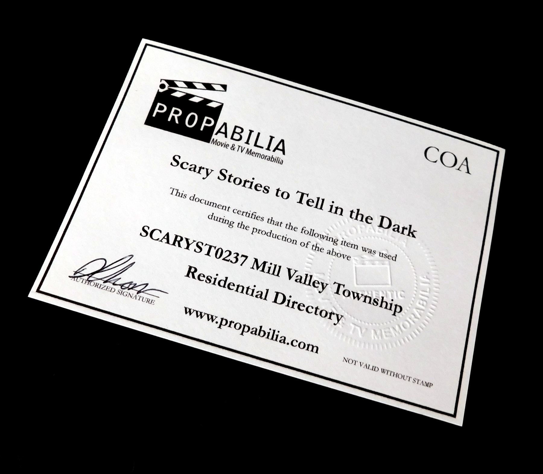 This Mill Valley Township Residential Telephone Directory was acquired by the production for use in 'Scary Stories to Tell in the Dark' (Lionsgate, 2019).