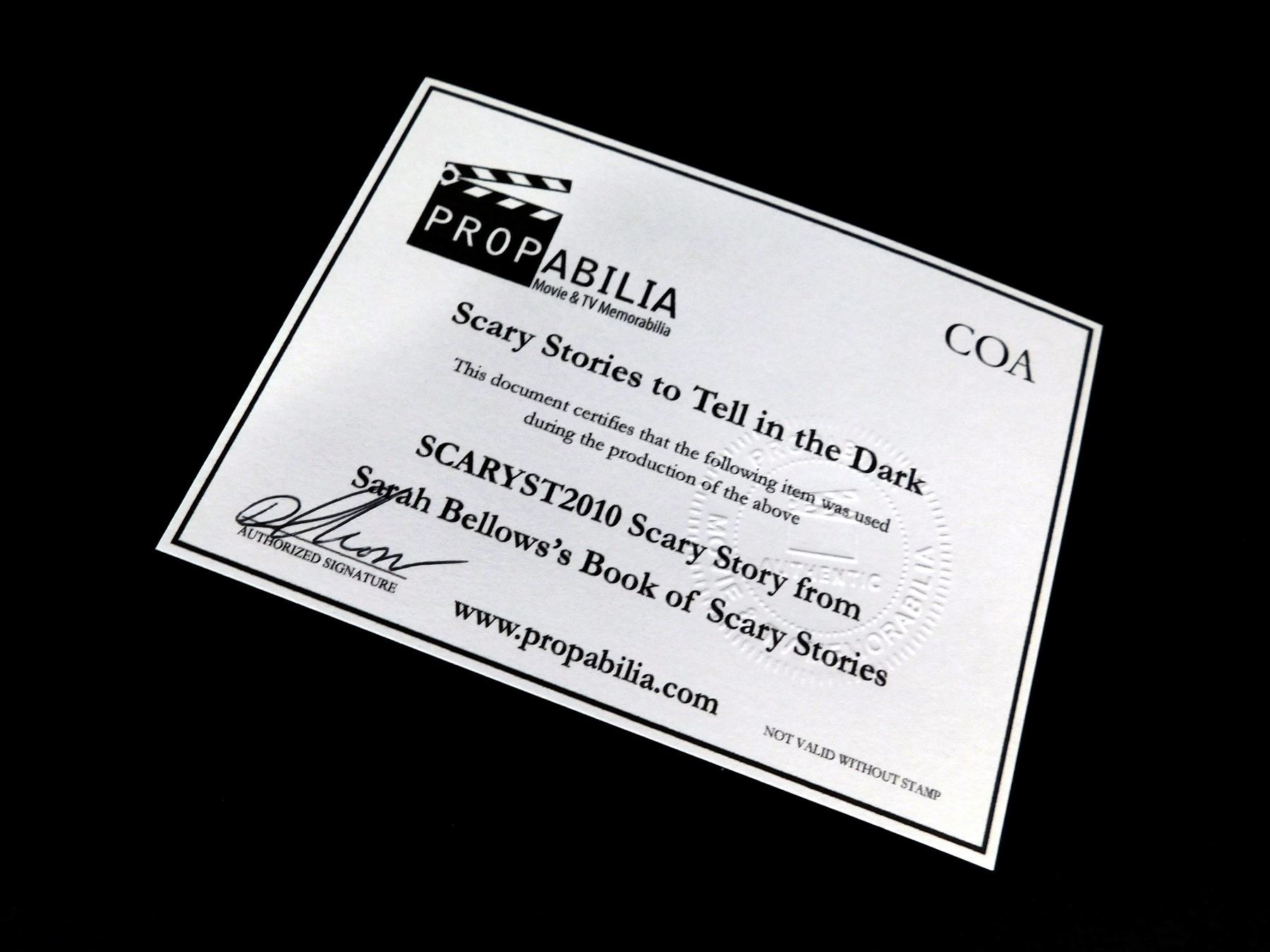 This book page was acquired by the production for use in 'Scary Stories to Tell in the Dark' (Lionsgate, 2019).