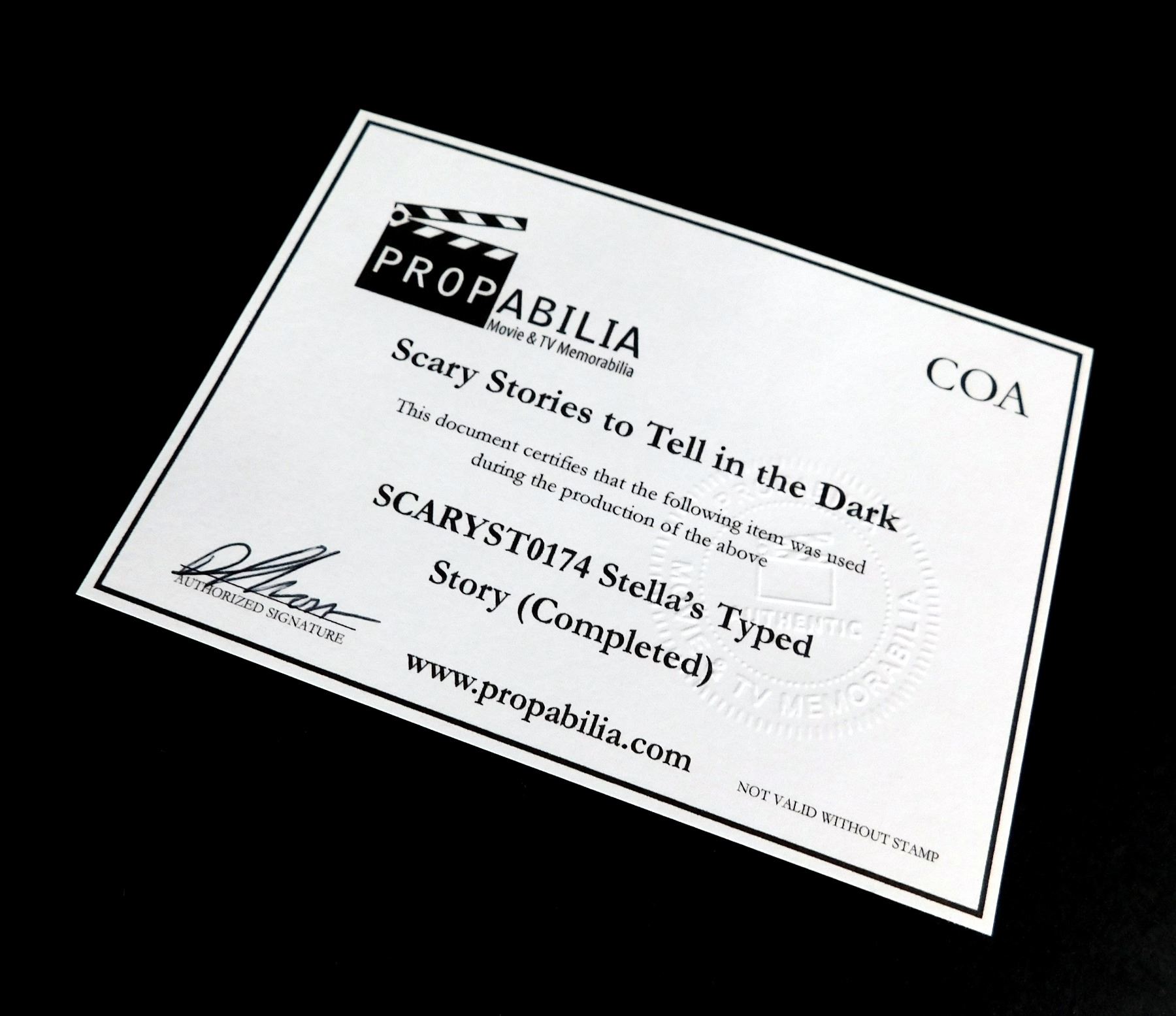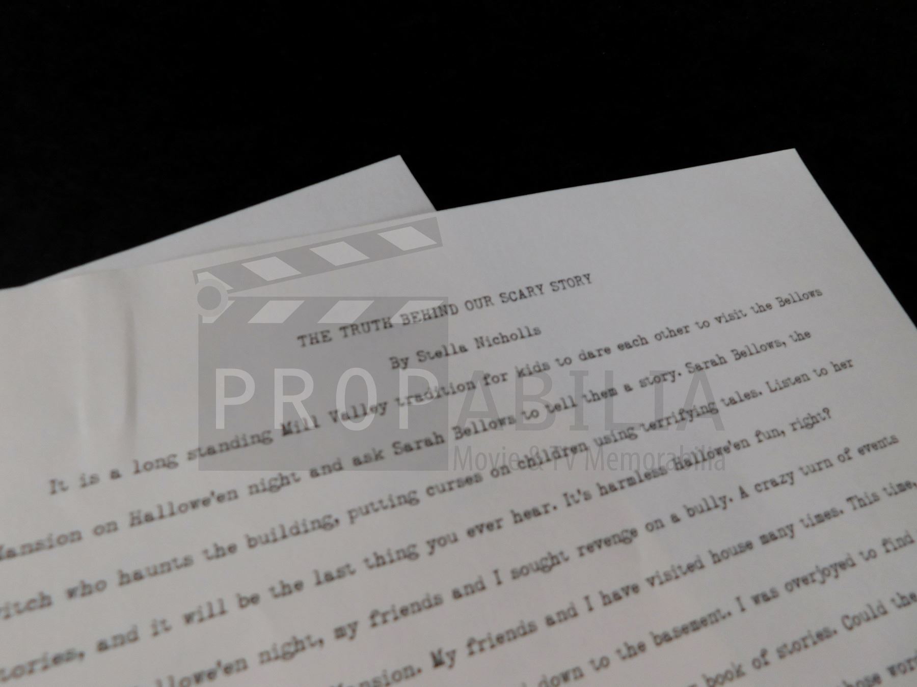 This Stella Nicholls Typed Story (Completed) was acquired by the production for use in 'Scary Stories to Tell in the Dark' (Lionsgate, 2019).