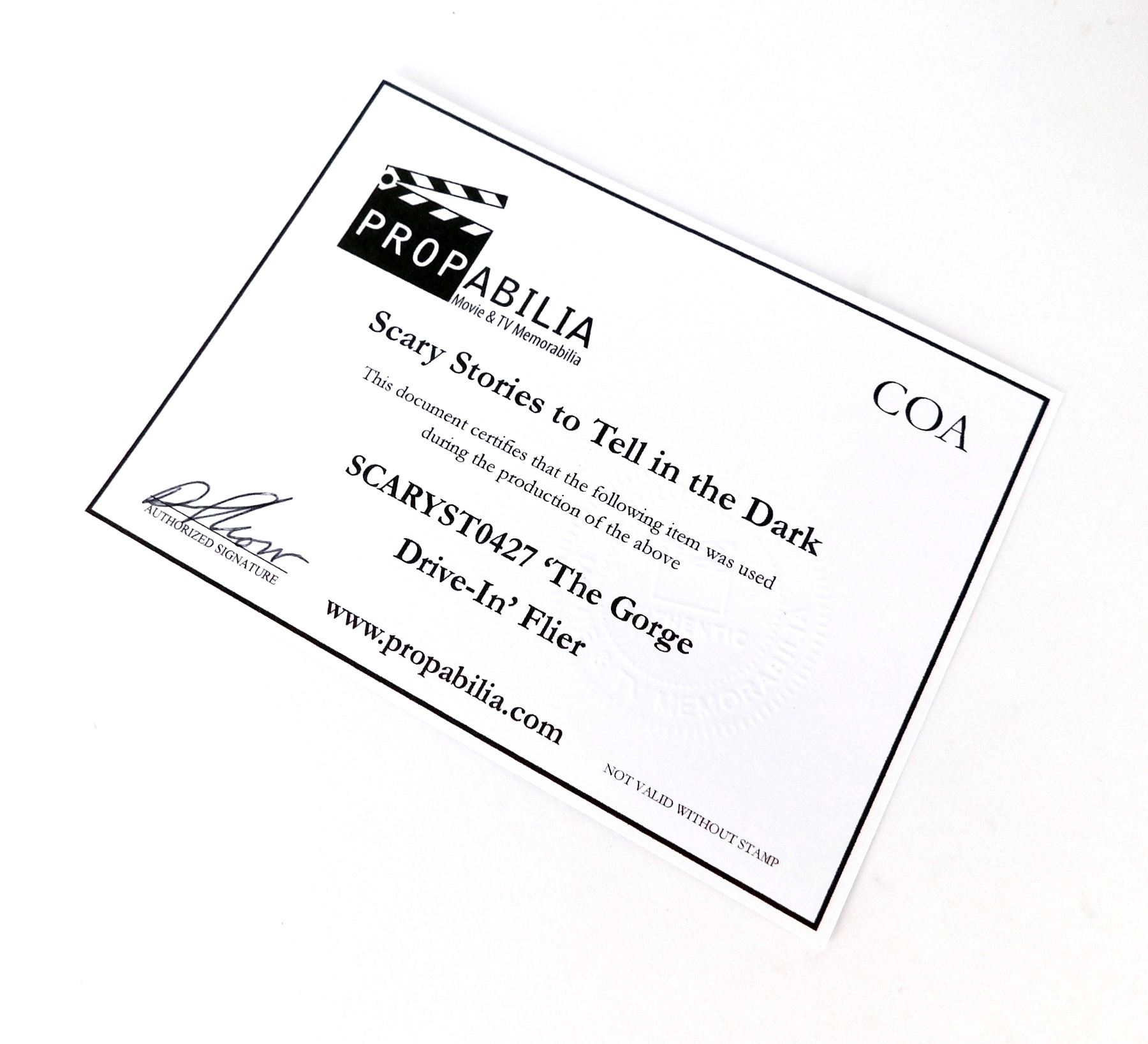 This The Gorge Drive-In Flier was acquired by the production for use in 'Scary Stories to Tell in the Dark' (Lionsgate, 2019).