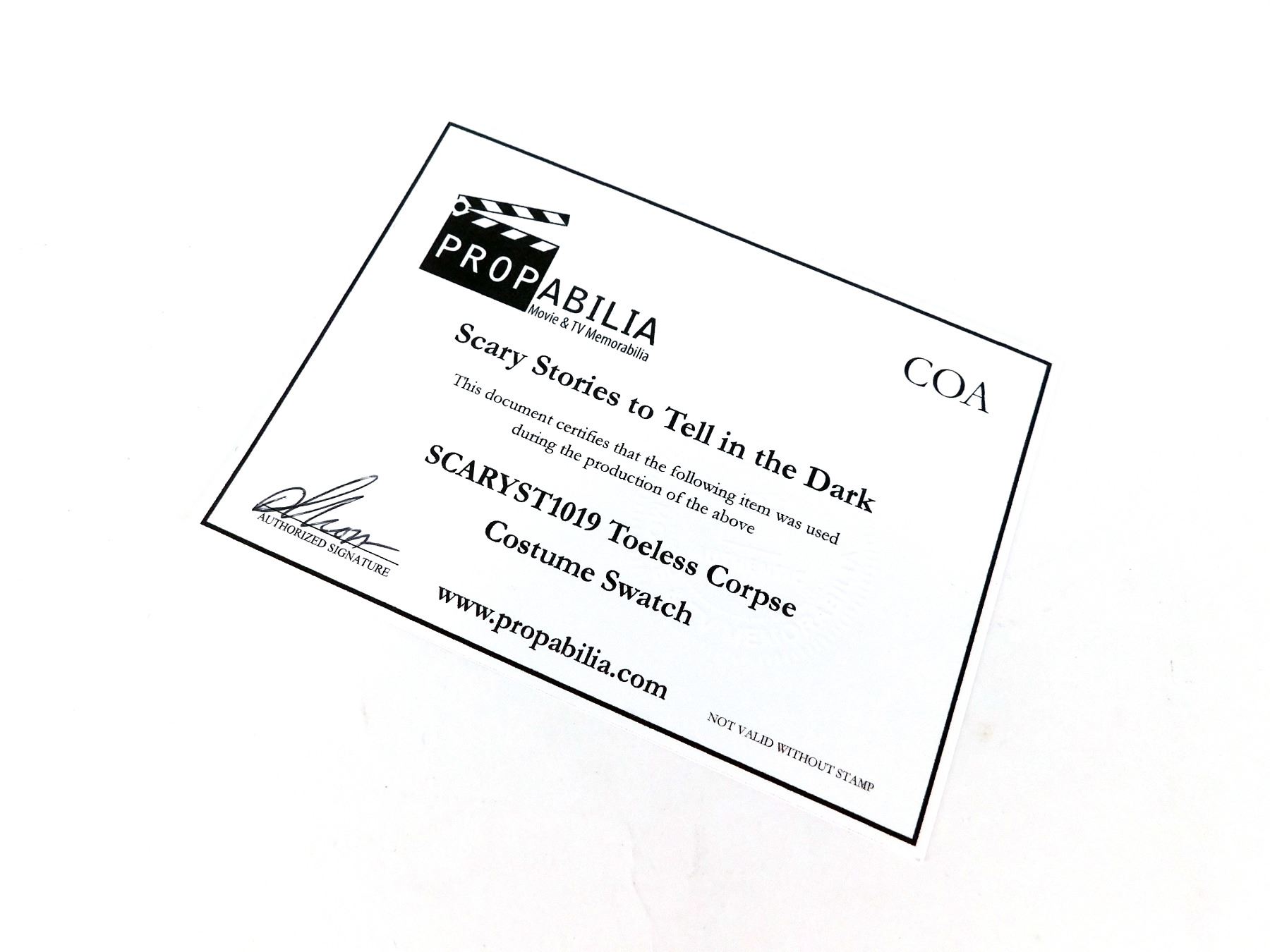 This Toeless Corpse Costume Swatch was acquired by the production for use in 'Scary Stories to Tell in the Dark' (Lionsgate, 2019).