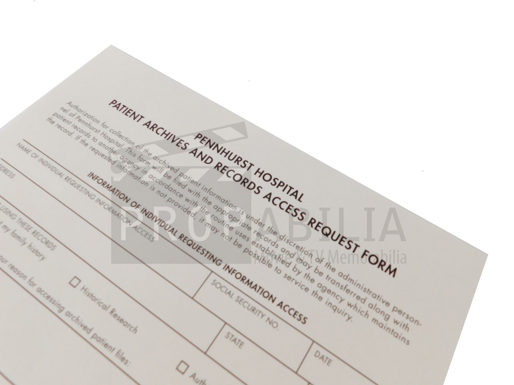 This form was acquired by the production for use in 'Scary Stories to Tell in the Dark' (CBS Films, 2019).
