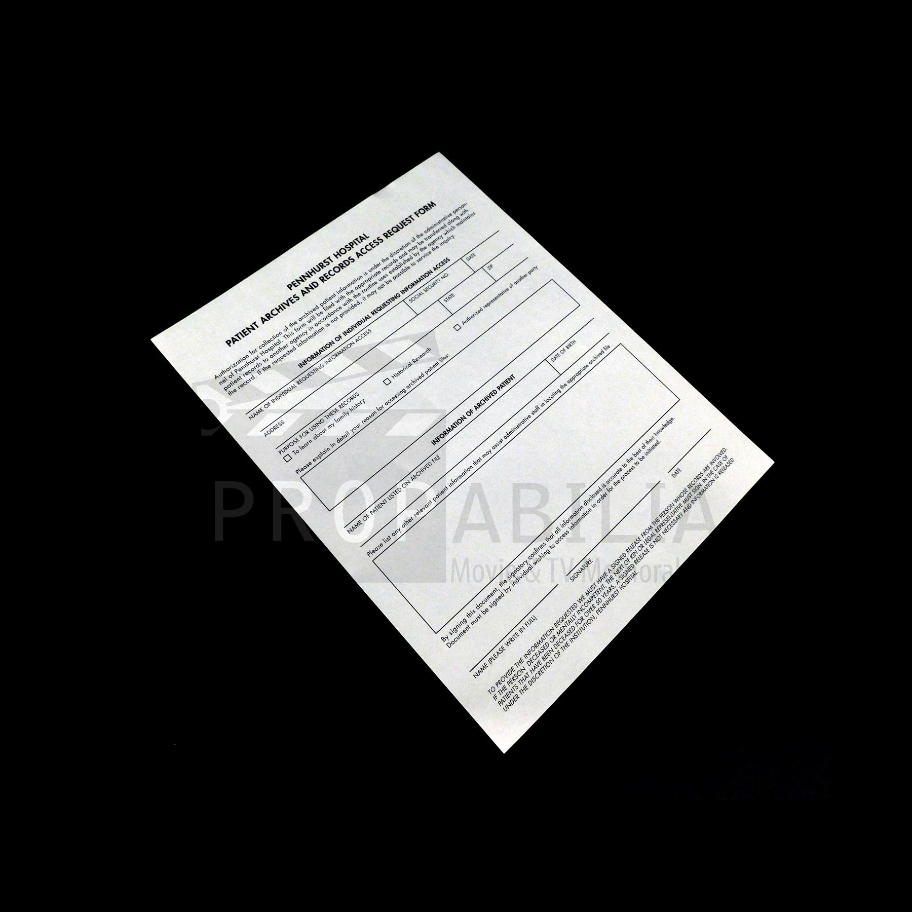 This form was acquired by the production for use in 'Scary Stories to Tell in the Dark' (CBS Films, 2019).