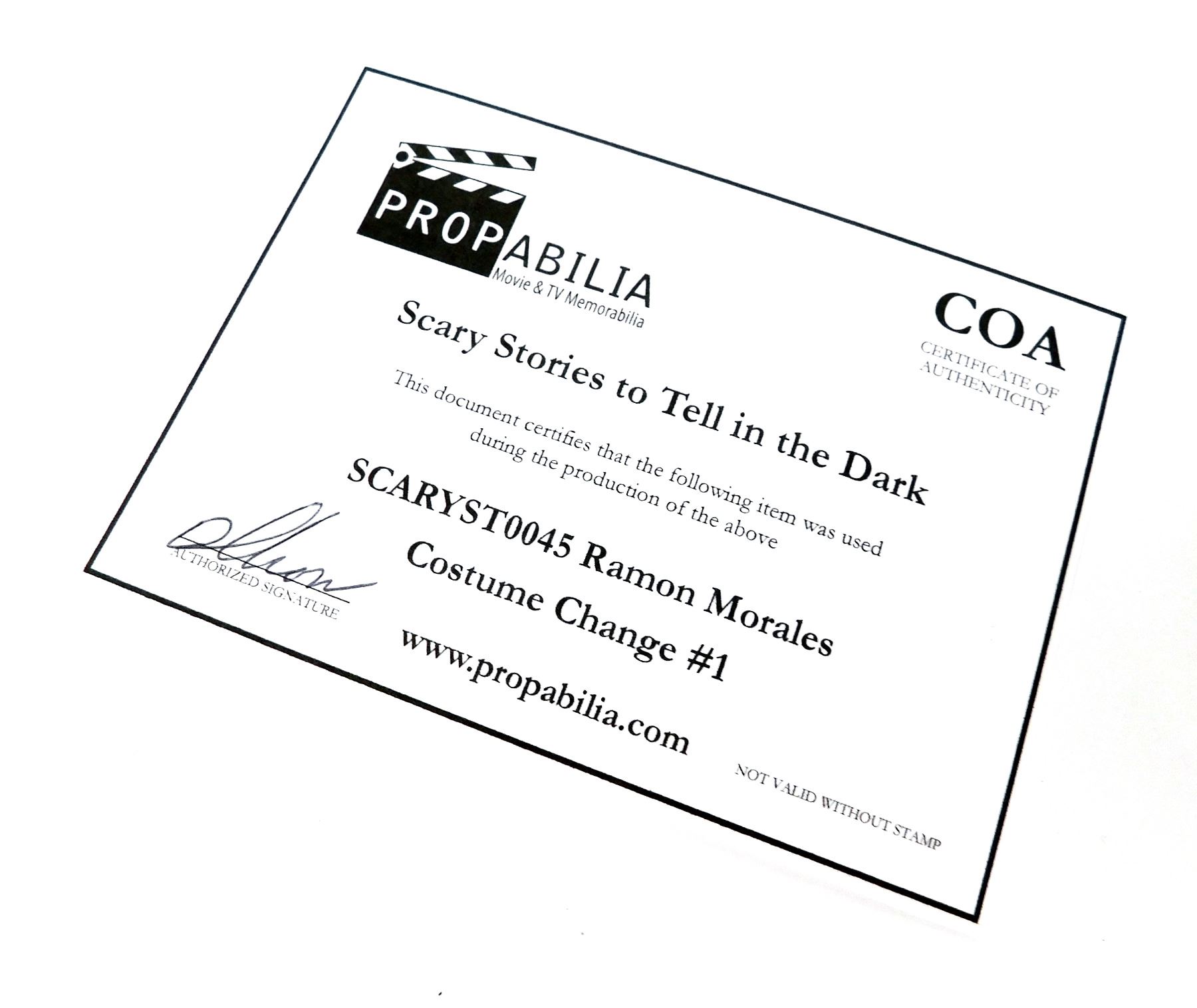 Propabilia guarantees the attribution of each lot of Property as stated in the title block of that lot of Property in the Auction catalogue, each lot of property comes with its own Certificate of Authenticity (COA). Bidders should be aware that multiple examples of props and costumes are frequently used during production (hence the Propmasters saying 'one and done'), usually as few as 3 or as many as 6 or more pieces may be used to represent the item on screen. It is often impossible to determine whether a specific piece has been used on-camera. Any specific details about the property known to Propabilia will be noted within the description, but no warranties are given by Propabilia as to that description.