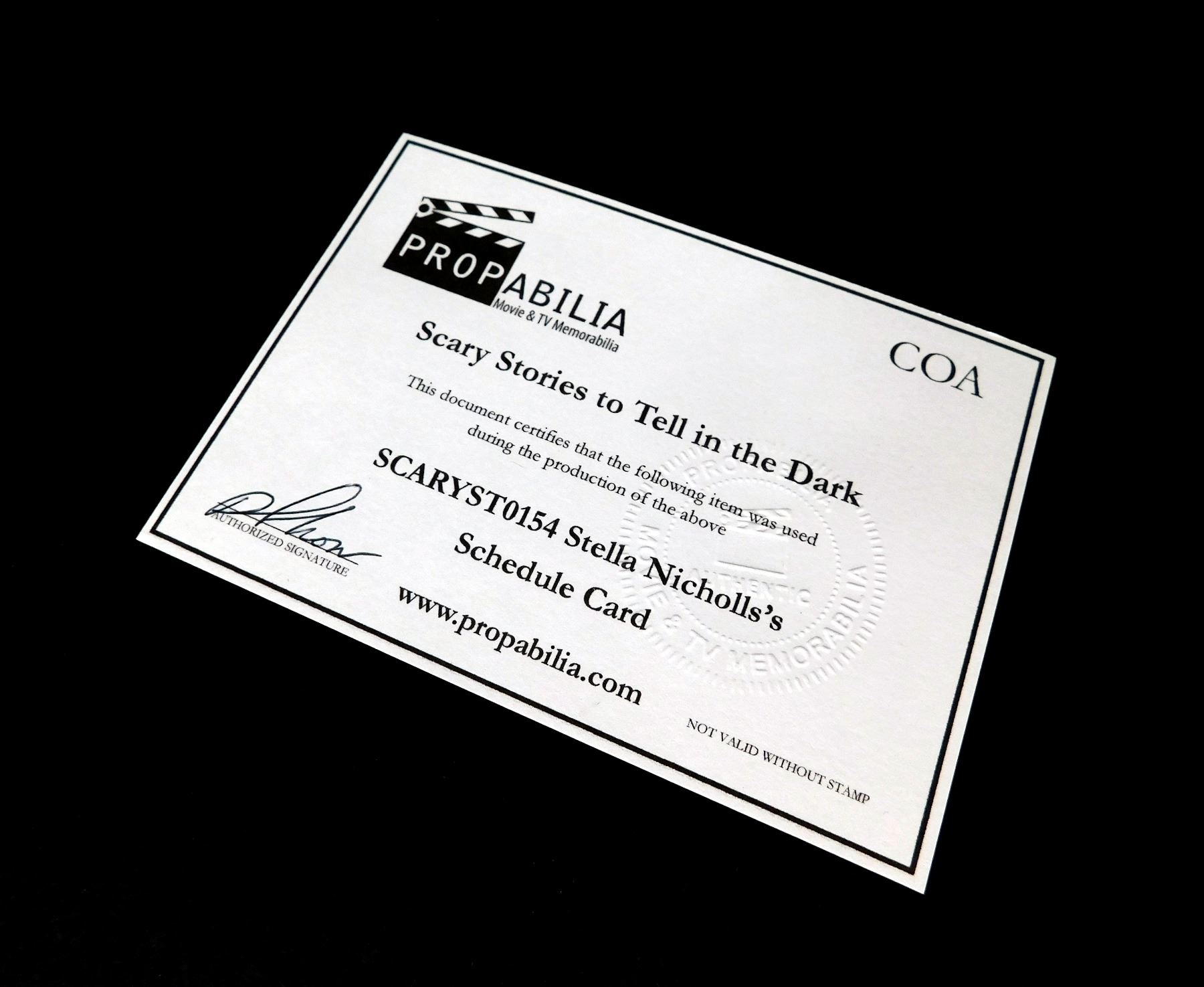 This schedule card was acquired by the production for use in 'Scary Stories to Tell in the Dark' (Lionsgate, 2019).
