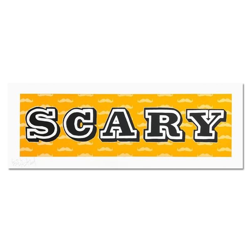 "Scary" is a limited edition screen print on paper by Ben Eine. This piece is numbered and signed by the artist. Comes with Letter of Authenticity. Measures approx. 36.5" x 17" (frame), 30.5" x 11" (image).