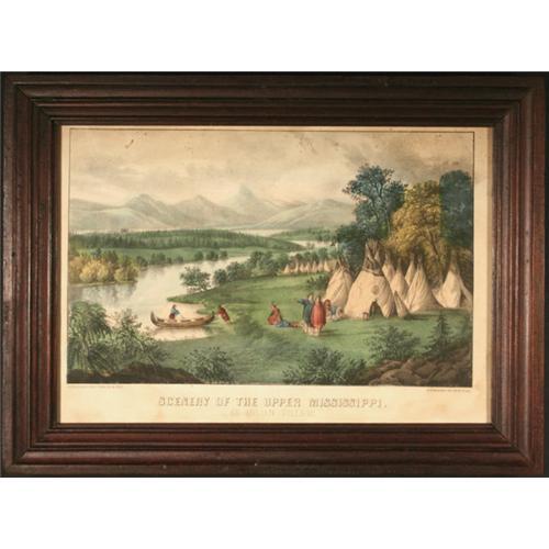 Currier and Ives Antique Lithograph, ?Scenery of the Upper Mississippi/An Indian Village?