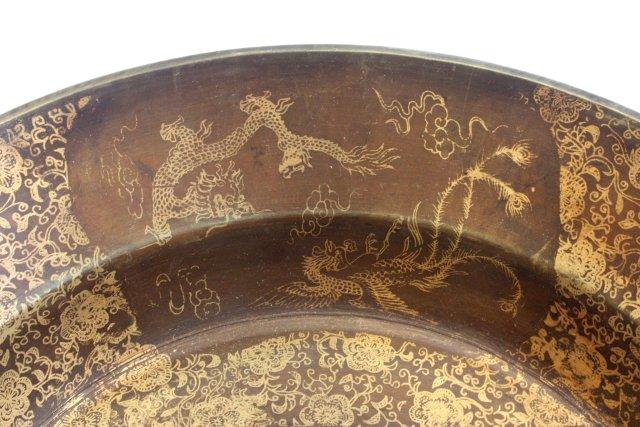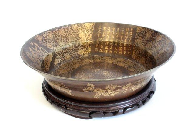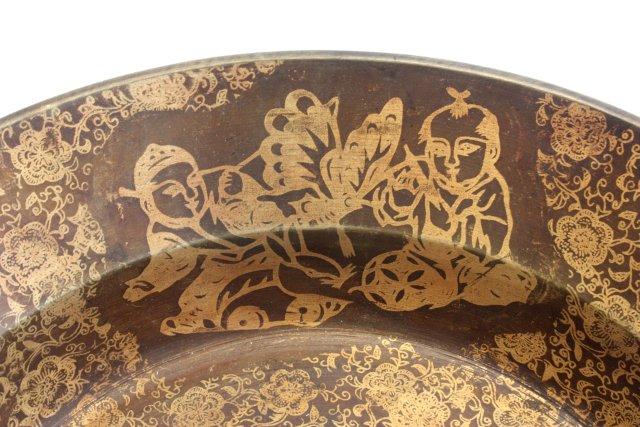 Scenicn brass bowl with calligraphy