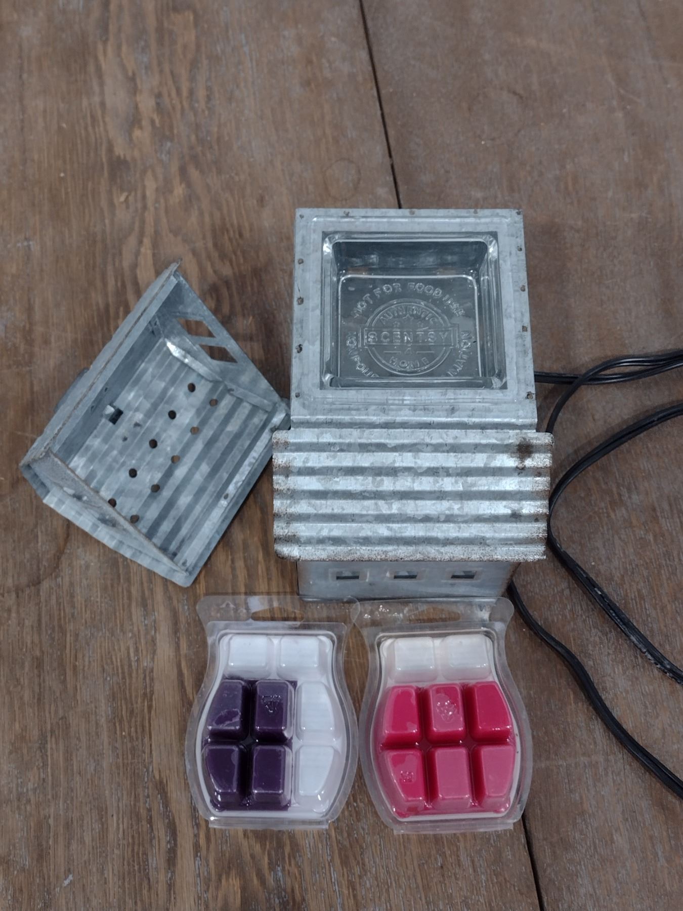 Scentsy wax melter with two partial packages of wax