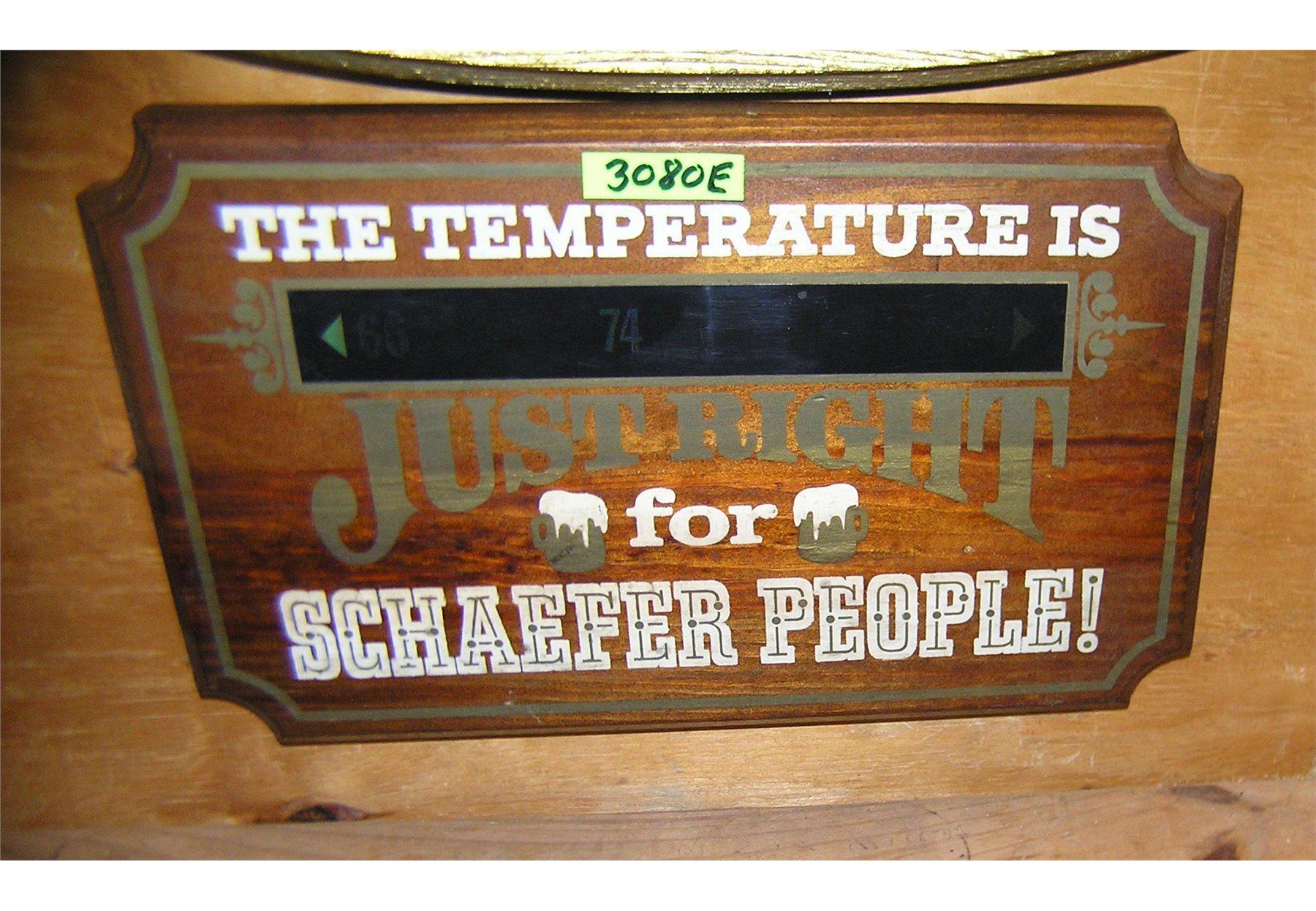 Schaefer Beer wooden advertising wall display piece with built in barometer est. value $75.00-$80.00