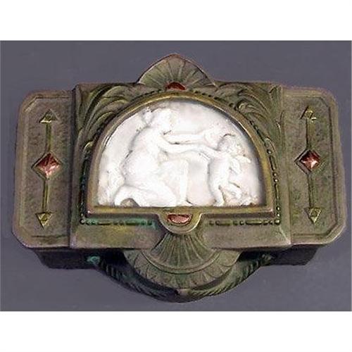 <tr><td>Title:Schafer Vater Fairy and Cherub Jasperware Box</td></tr>