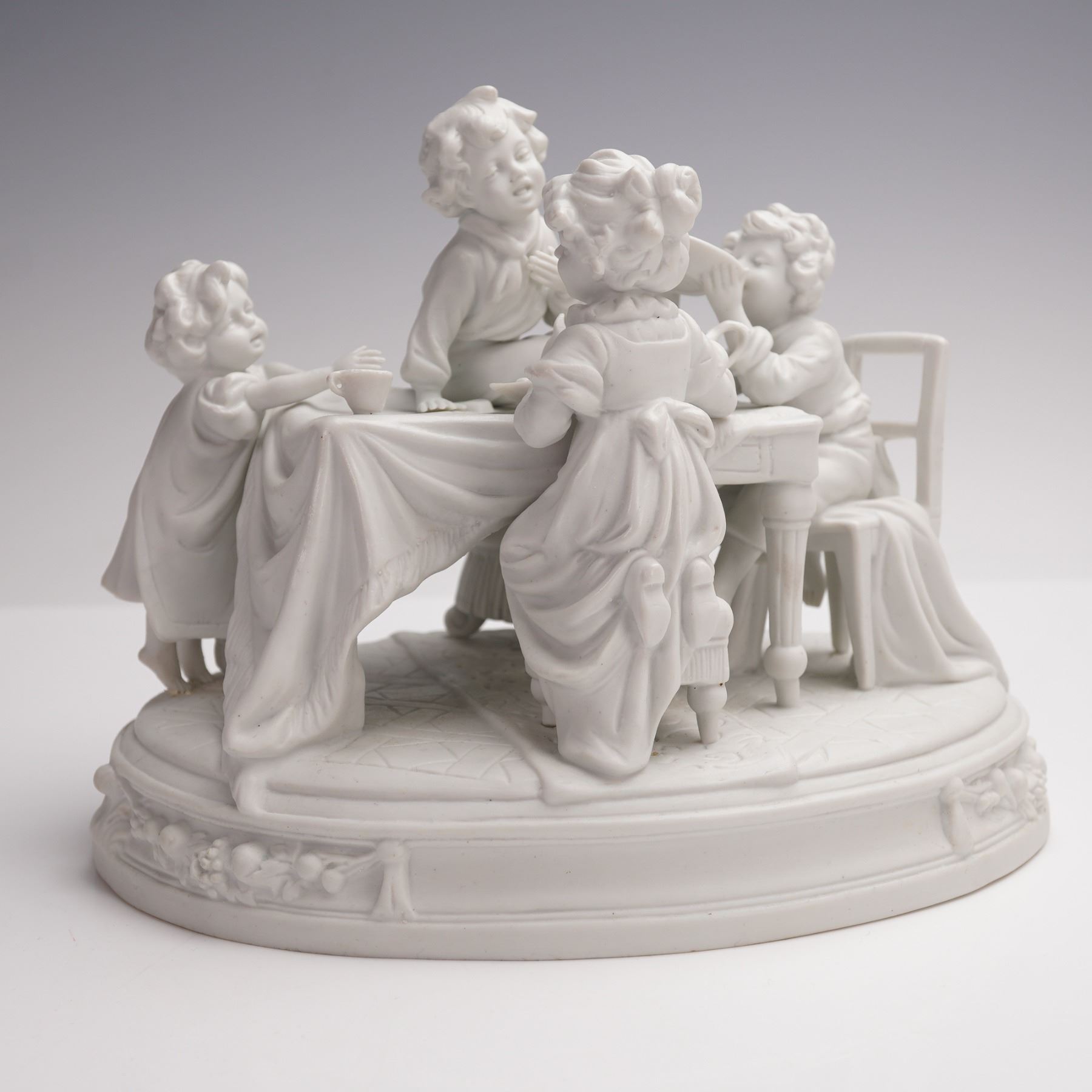 Scheibe-Alsbach Bisque Porcelain Figurine, Children at a Dinner Table