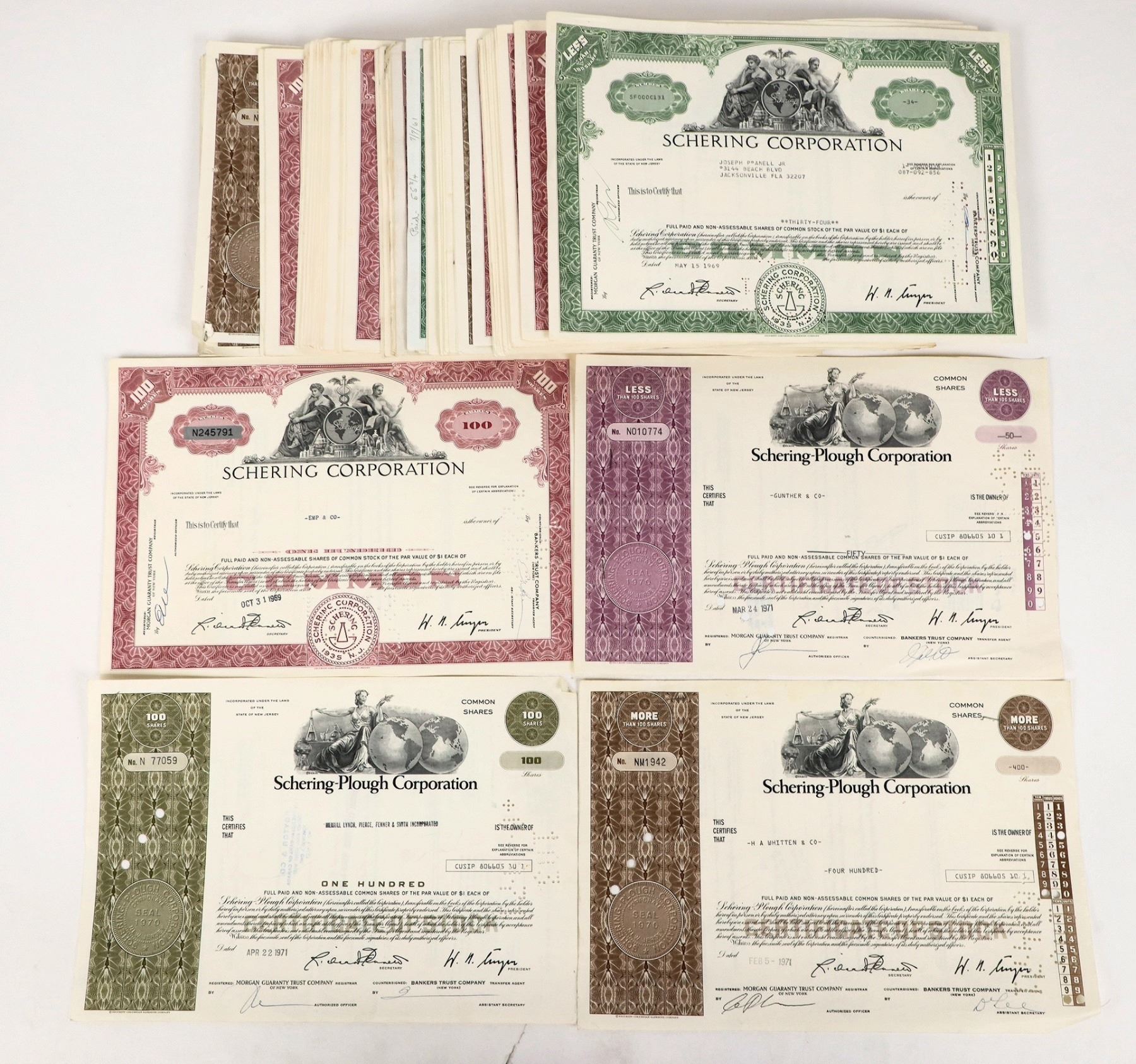 There are over 200 stock certificates for Schering Corp. -1969 and Schering -Plough Corp. (1971-) Please see photo for details.