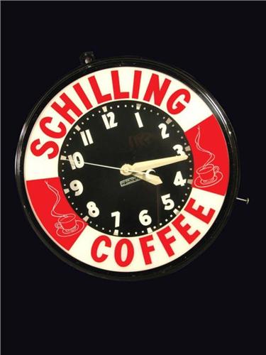 Schilling Coffee Light up Clock. Has a great look all lit up. Near mint condition. 22 inch dia.
