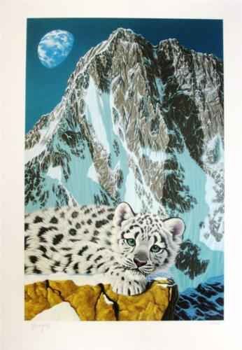 Schimmel "Snow Leopard" Hand Signed and Numbered Limited Edition Serigraph on Paper Dimensions: 29 x 20 Inches (Note: Edition number received may differ from photo)
