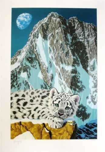 Schimmel "Snow Leopard" Hand Signed and Numbered Limited Edition Serigraph on Paper Dimensions: 29 x 20 Inches (Note: Edition number received may differ from photo)