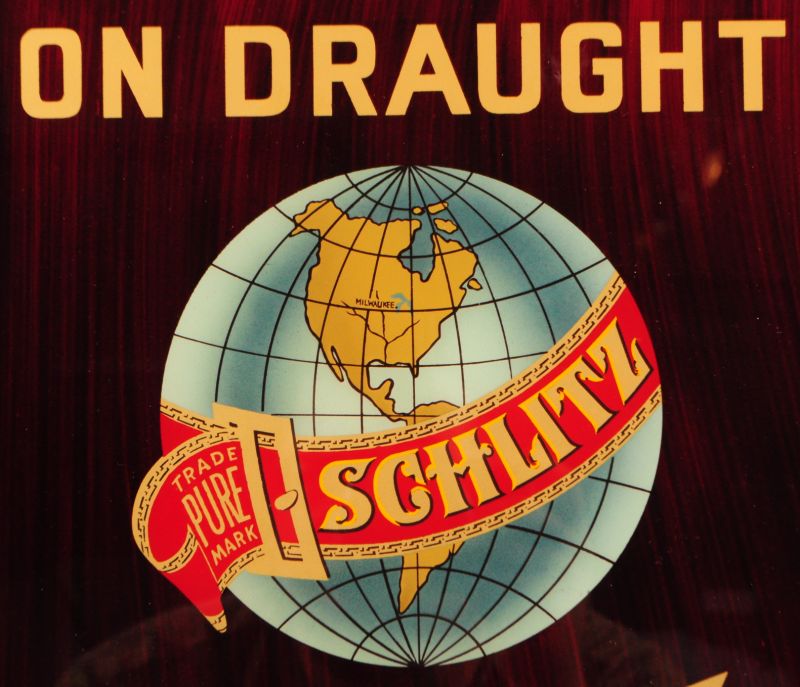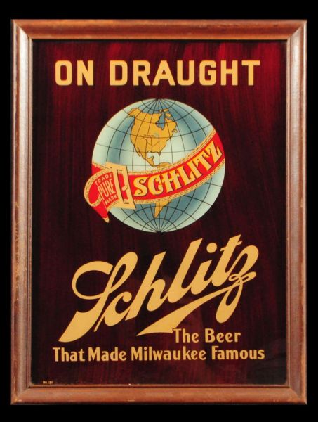 Schlitz Beer On Draught Reverse Glass Sign. Measures 17.5"x13.5"