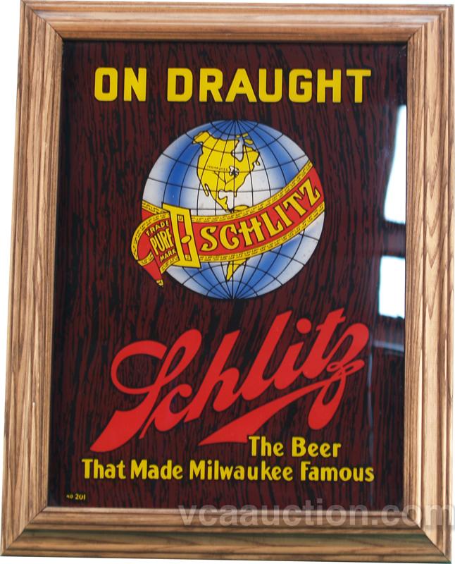 Schlitz Beer Reverse Glass Sign "The Beer That Made Milwaukee Famous" In Wood Frame - 15" x 19"