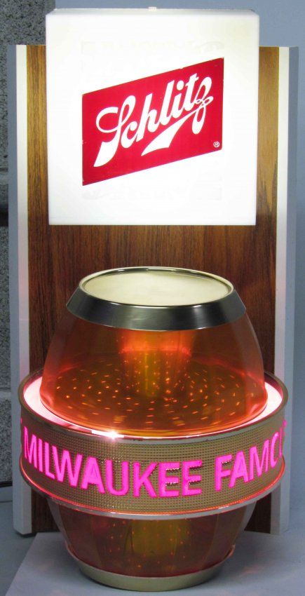 Schlitz Light Up Hanging Sign. Beer keg rotates. Very good working condition. 8 3/4 X 16 X 10 inches.