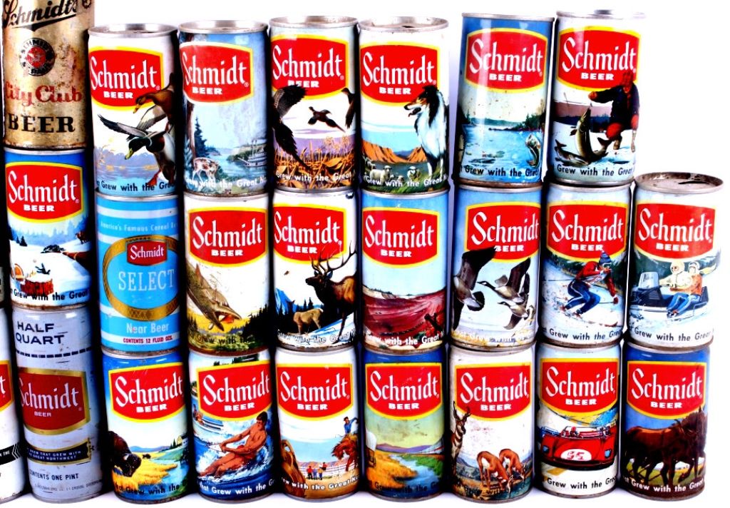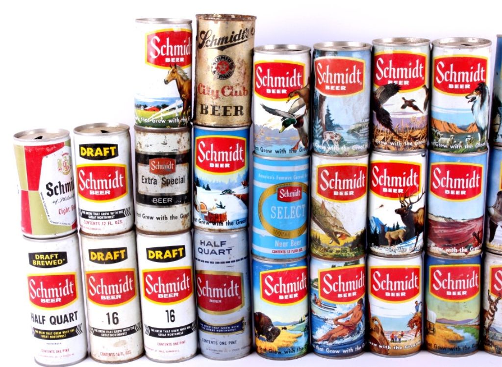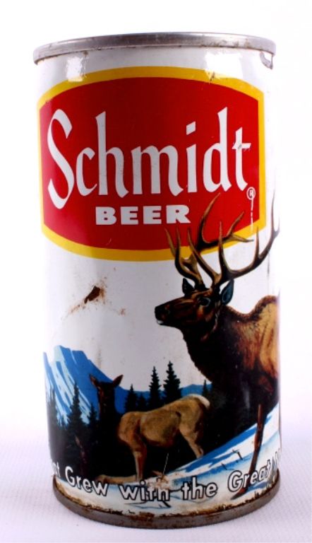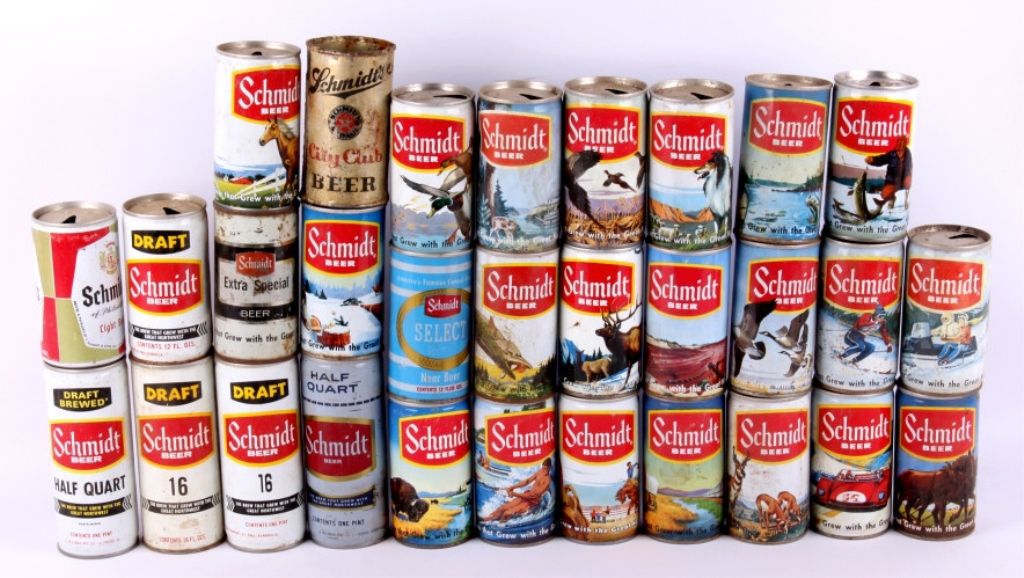 This lot includes 30 Schmidt beer cans. Most of the cans show a unique scene on the label such as Elk, Buffalo, Cowboy, etc. Some cans have dents or are in fair condition.