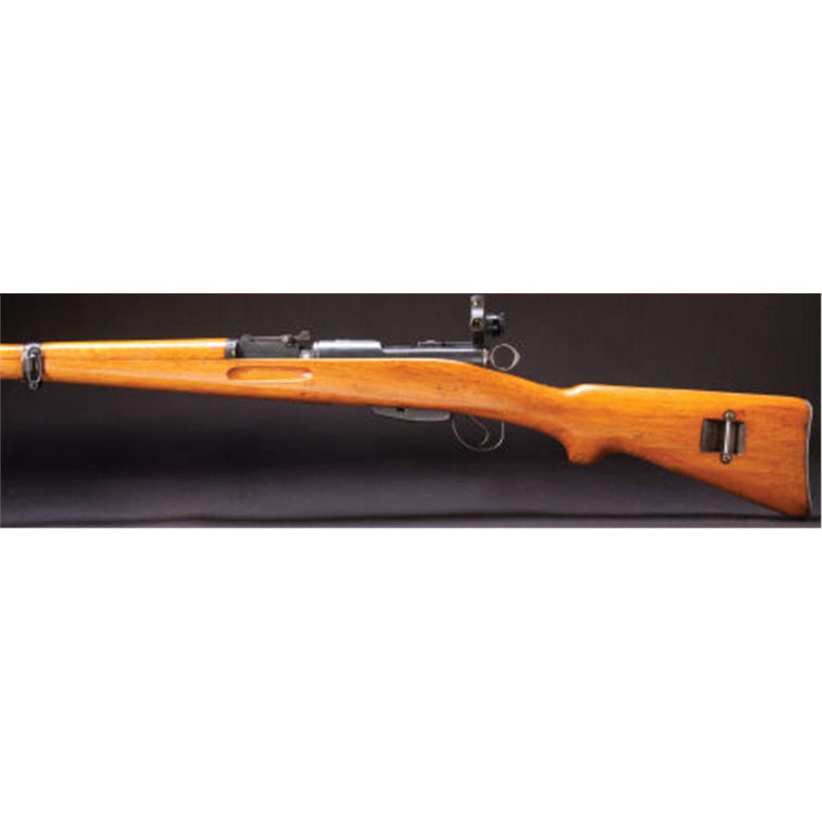 *Schmidt-Rubin Model K1931 Target Rifle. Serial no. 854585. 7.5 Swiss. 25-inch barrel. Standard military configuration. Adjustable slip-on rear Anschutz target sight. Sight marked: W.Gehmann D75 Karlsruhe, W. Germany. Sight with windage and elevation micrometer adjustments. Eyepiece with adjustable aperture. Slip on matching front target sight accepting multiple post and aperture inserts. Condition: Excellent. Showing limited use. Wood shows a few marks.