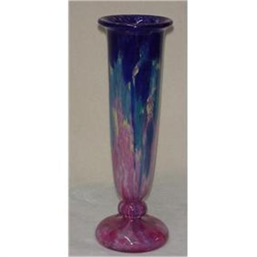 An early 20th century art glass vase, 12" tall 4" diameter base. Multi color of cobalt, acqua, yellow, green, violet and rose give beauty to this signed Schneider vase, polished pontil also signed France. Condition is excellent. (3)