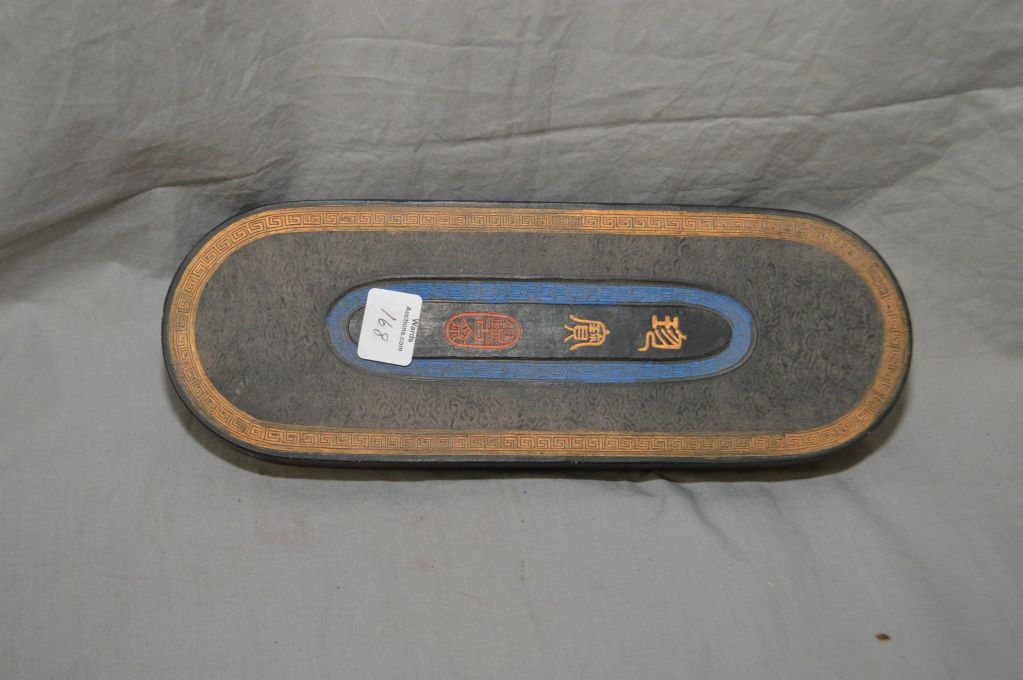 Scholar ink stop with gilt, red and blue highlights, purportedly late 19th century, 10" in length