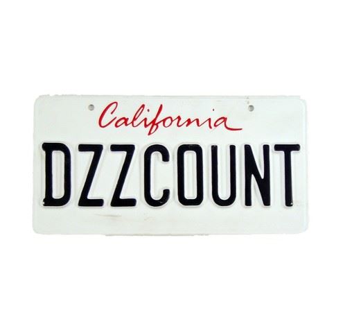 Screen used, plastic white California license plate with the plate # "DZZCOUNT".