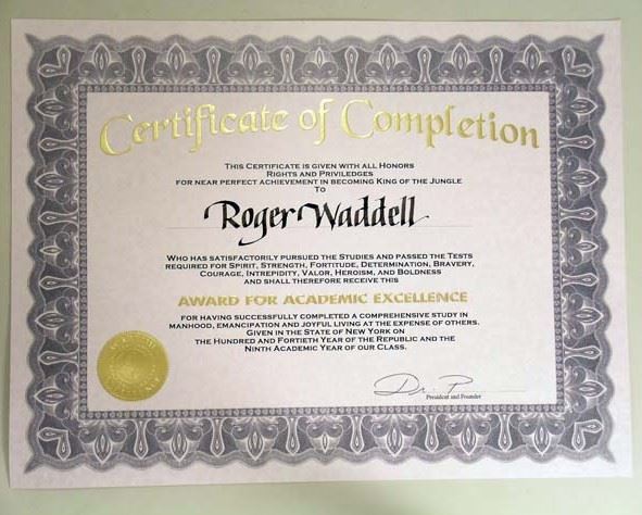 School For Scoundrels DR.P (Billy Bob Thornton) & ROGER (Jon Heder) Certificate of Completion Movie