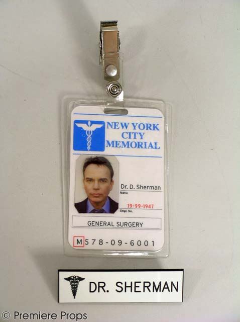 Alias Hospital ID & Name Tag Props (hospital ID measures approximately 2 ¼'' x 3 ½'' and features a photo of Dr.P and his alias, Dennis Sherman / name tag features the name, Dennis Sherman / made by studio just for movie) (DR. P)