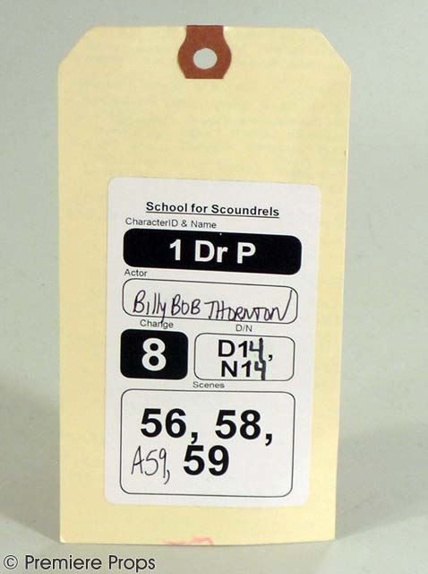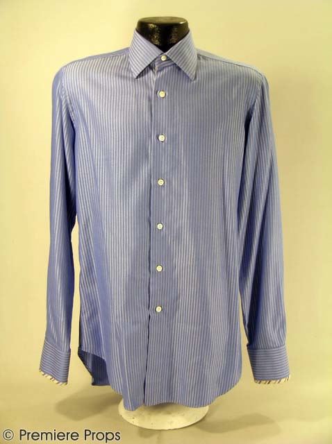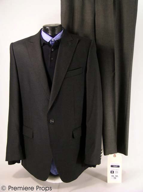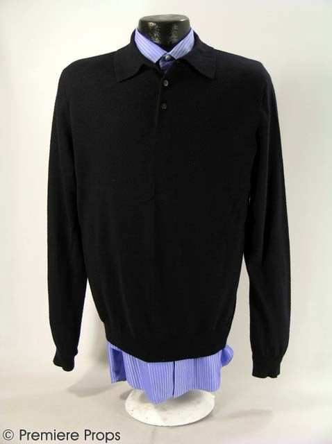 Straight from studio archives: Dr. P (Billy Bob Thornton) hero Cafe Costume: “Dolce & Gabbana” Black Blazer (no size indicated / inside pockets), “Dennis Kim” Charcoal Grey Slacks (no size indicated / single pleated front), "Joseph & Lyman" Black Sweater (size M / no tag), “Anto” Blue Striped LS Dress Shirt (no size / inside of shirt tagged "BBT" by costume department) (includes costume department wardrobe tag / screenworn by Dr.P during cafe scene with Amanda) (DR. P)