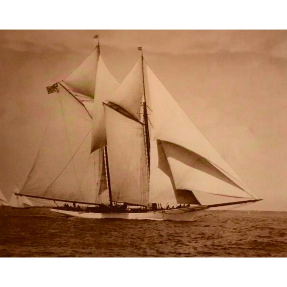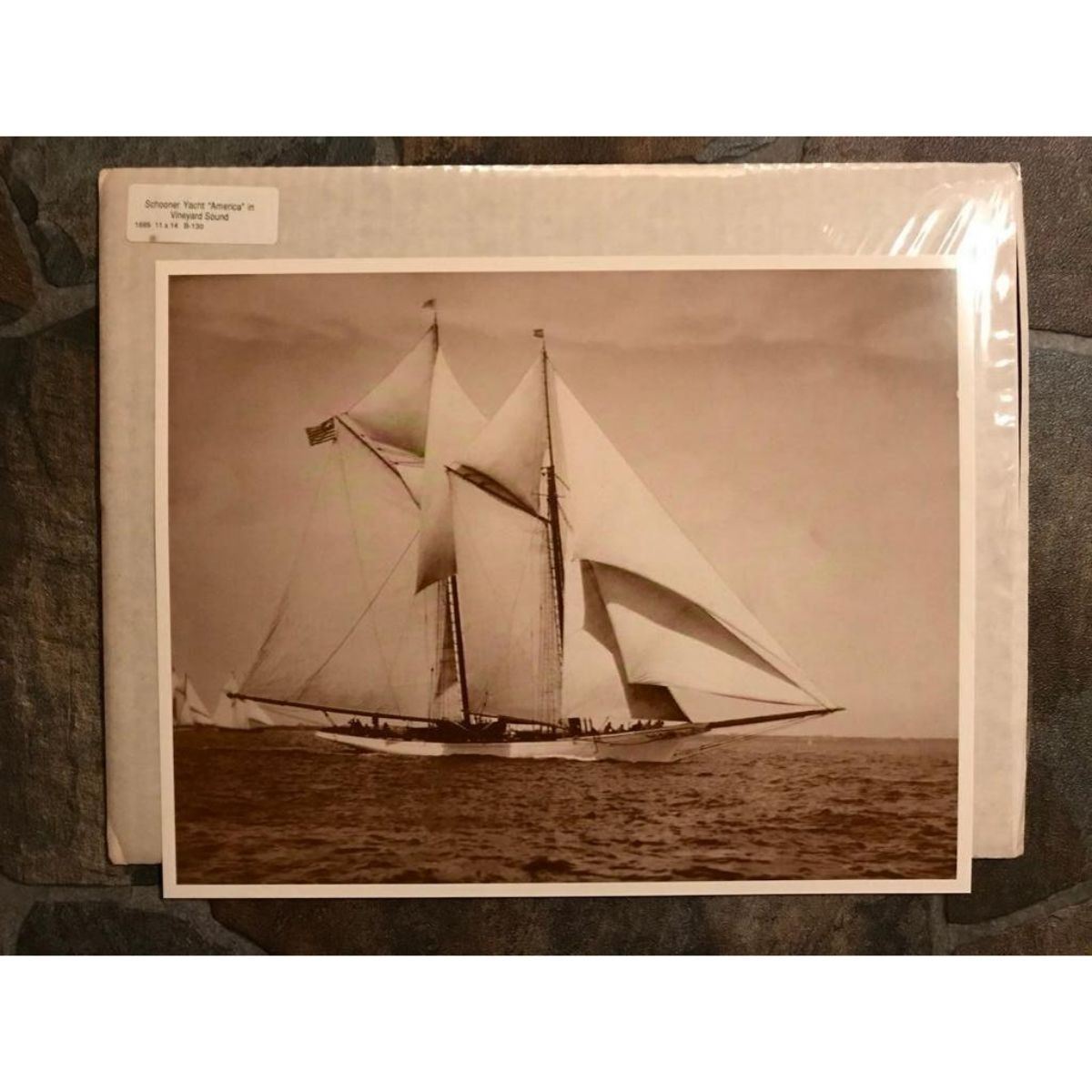 "Schooner Yacht America in Vineyard Sound" sepia-tone photo print. Created after the original 1885 photo, for The American Heritage Gallery, printed on heavy card stock. 11" X 14" in original shrink-wrapped packaging.Â