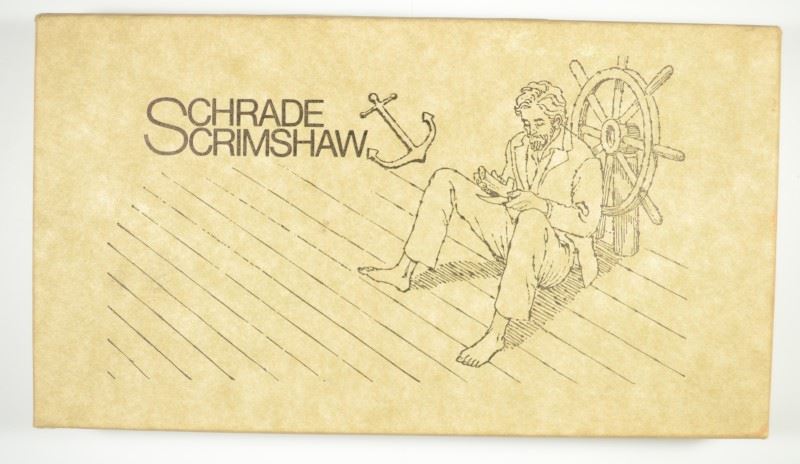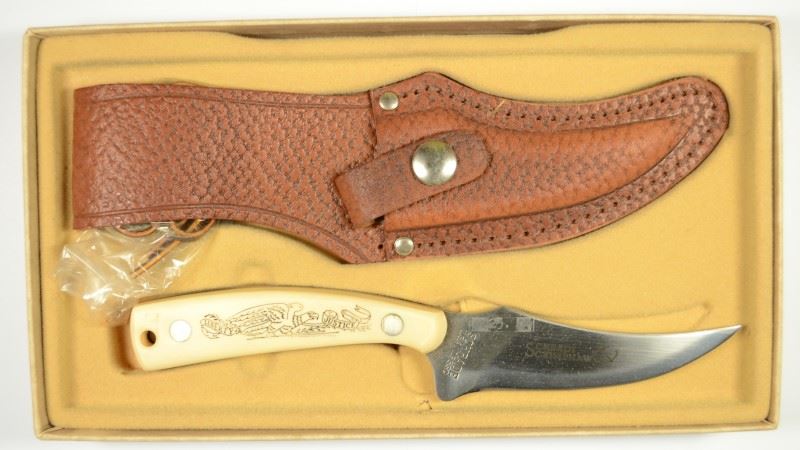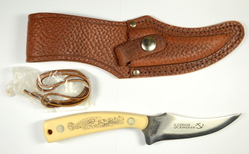 Schrade Scrimshaw Knife 00952 Fixed Blade Knife with Leather Sheath in Box. EST:$100-$125