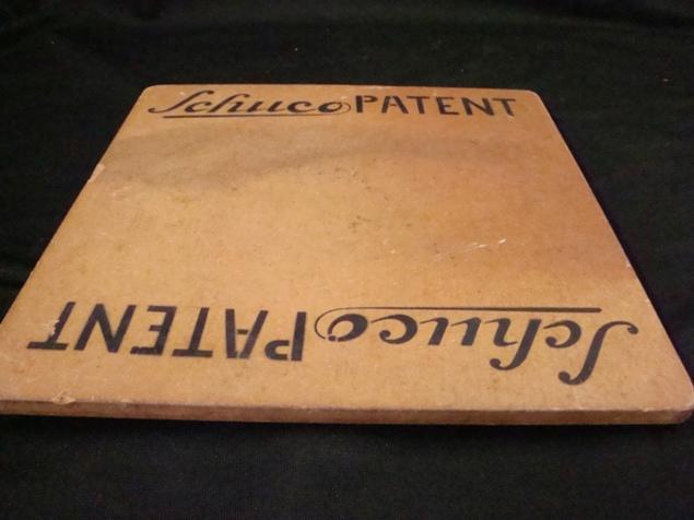 10" square, wood advertising display made for a store sales point. In the center of the board there is a raised platform to display the current release.
