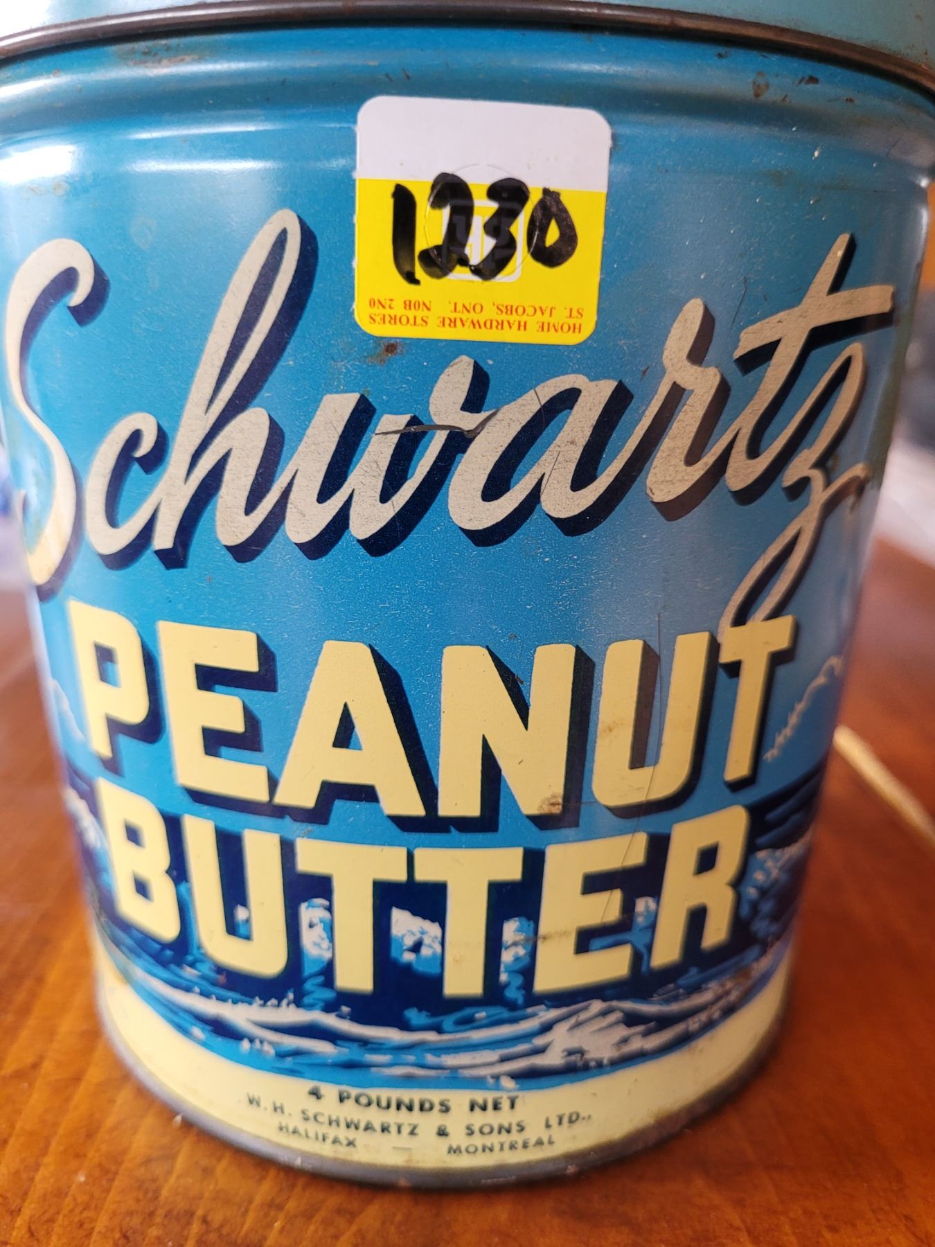 Schwartz 4 lb peanut butter pail Canadian - Great graphics and condition