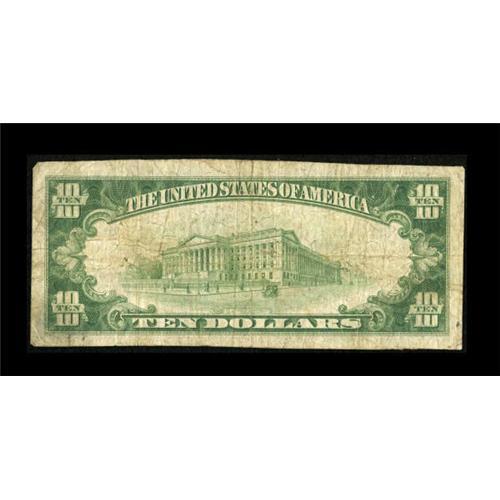 <B>Schwertner, TX</B></I> - $10 1929 Ty. 1 <B>The First NB</B></I> Ch. # 10956<BR> This is a very scarce Central Texas note from the only bank chartered in this rural Williamson County location. The president is Adolph Schwertner. He founded the eponymous community in 1903 when he built a cotton gin there. <B>Fine </B></I>with some black ink droplets near the left edge.<BR><BR><BR><b>Shipping:</b> Coins & Currency (<a target="_blank" href="http://www.heritageauctions.com/common/shipping.php">view shipping information</a>)