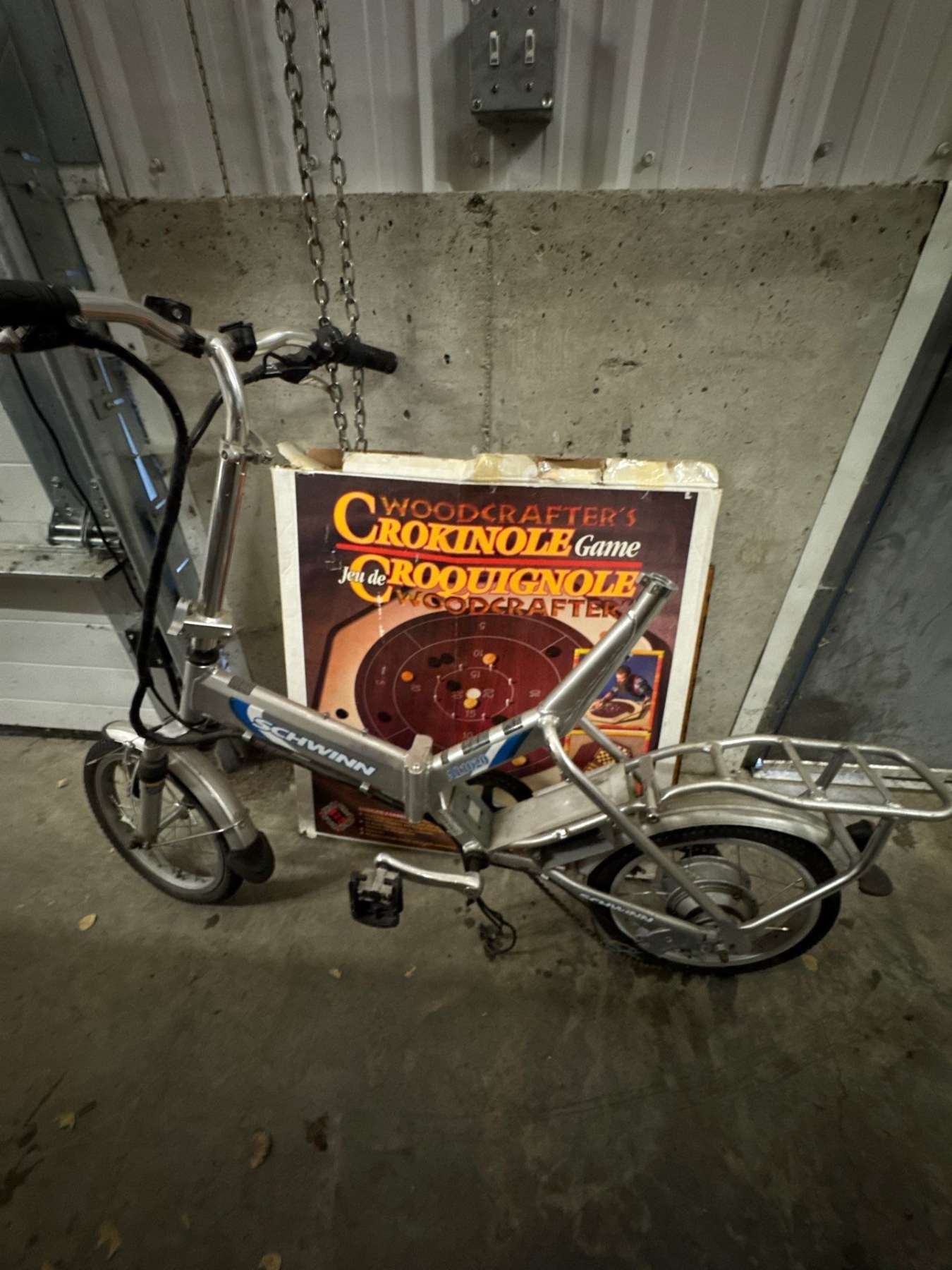 Schwinn folding electric bike a l one zero two zero model missing the battery and motor.