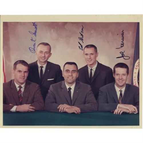<B>Scientist-Astronauts Signed Color Photograph,</B></I> 10" x 8", "<I>Owen K. Garriott,</B></I>" "<I>Ed Gibson,</B></I>" and "<I>Joe Kerwin.</B></I>" This photograph of the first NASA scientist-astronauts was taken on November 1, 1966. Garriott and Gibson were physicists, Kerwin was a physician. <I>From the collection of renowned former physical trainer of the astronauts Joe Garino. This lot is accompanied by a signed certificate of authentication from Garino verifying its provenance.</B></I><BR><BR><b>Shipping:</b> Flat Material, Small (<a target="_blank" href="http://www.heritageauctions.com/common/shipping.php">view shipping information</a>)