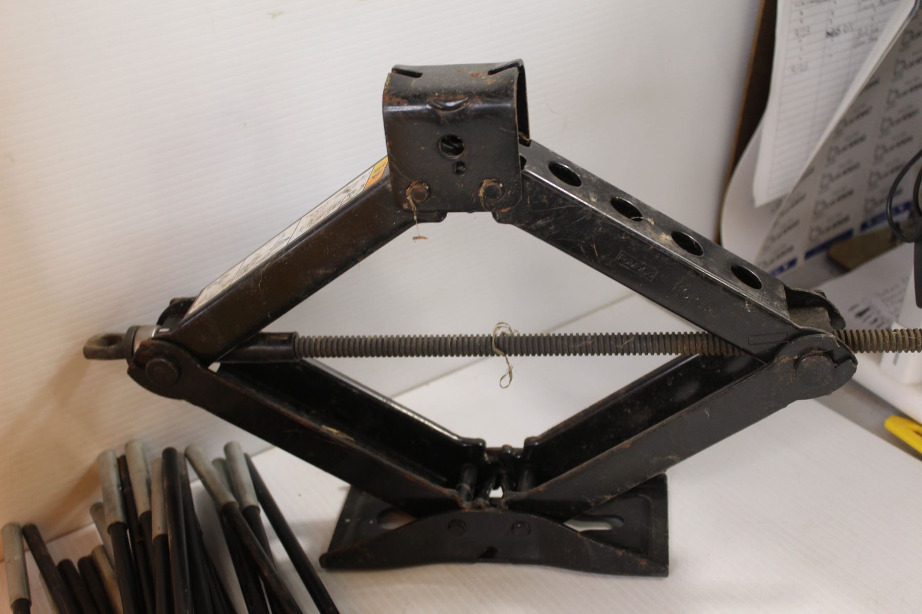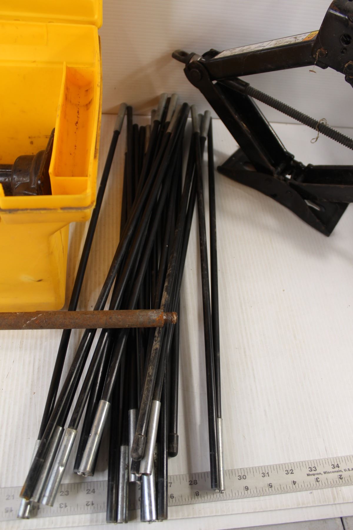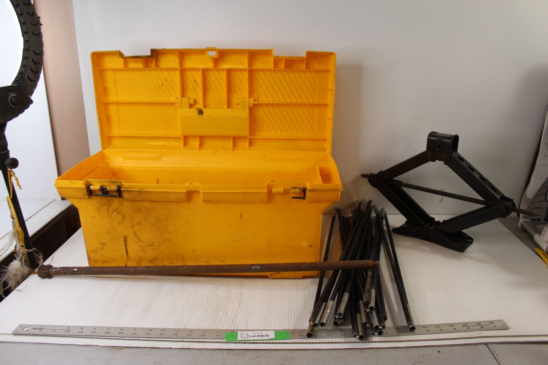 Scissor Jack, Tent Poles, Rubbermaid Tool Box